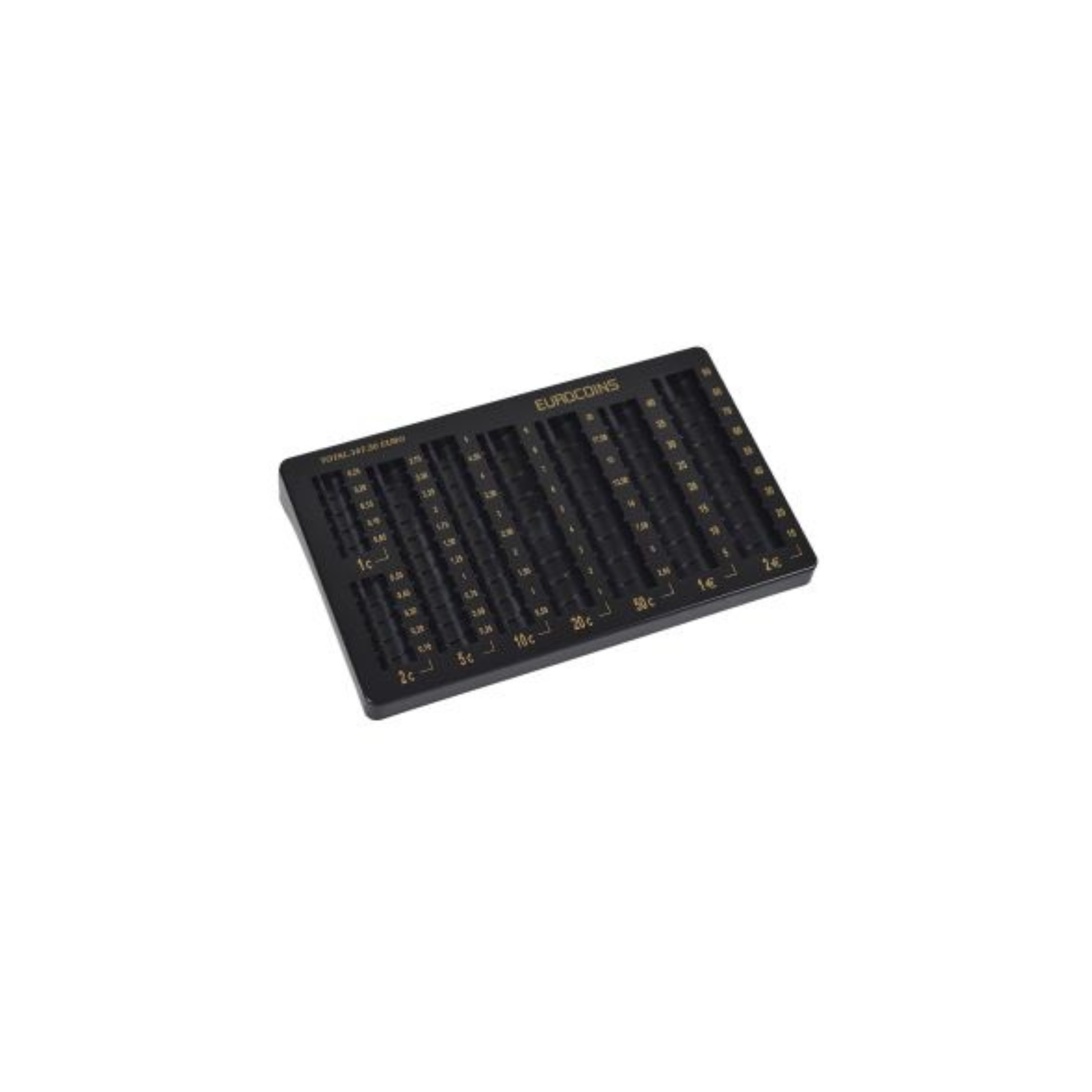 Черният монетник за евро е практичен аксесоар за съхранение и подреждане на евро монети. Подходящ е за търговски обекти, каси, офис и лична употреба.