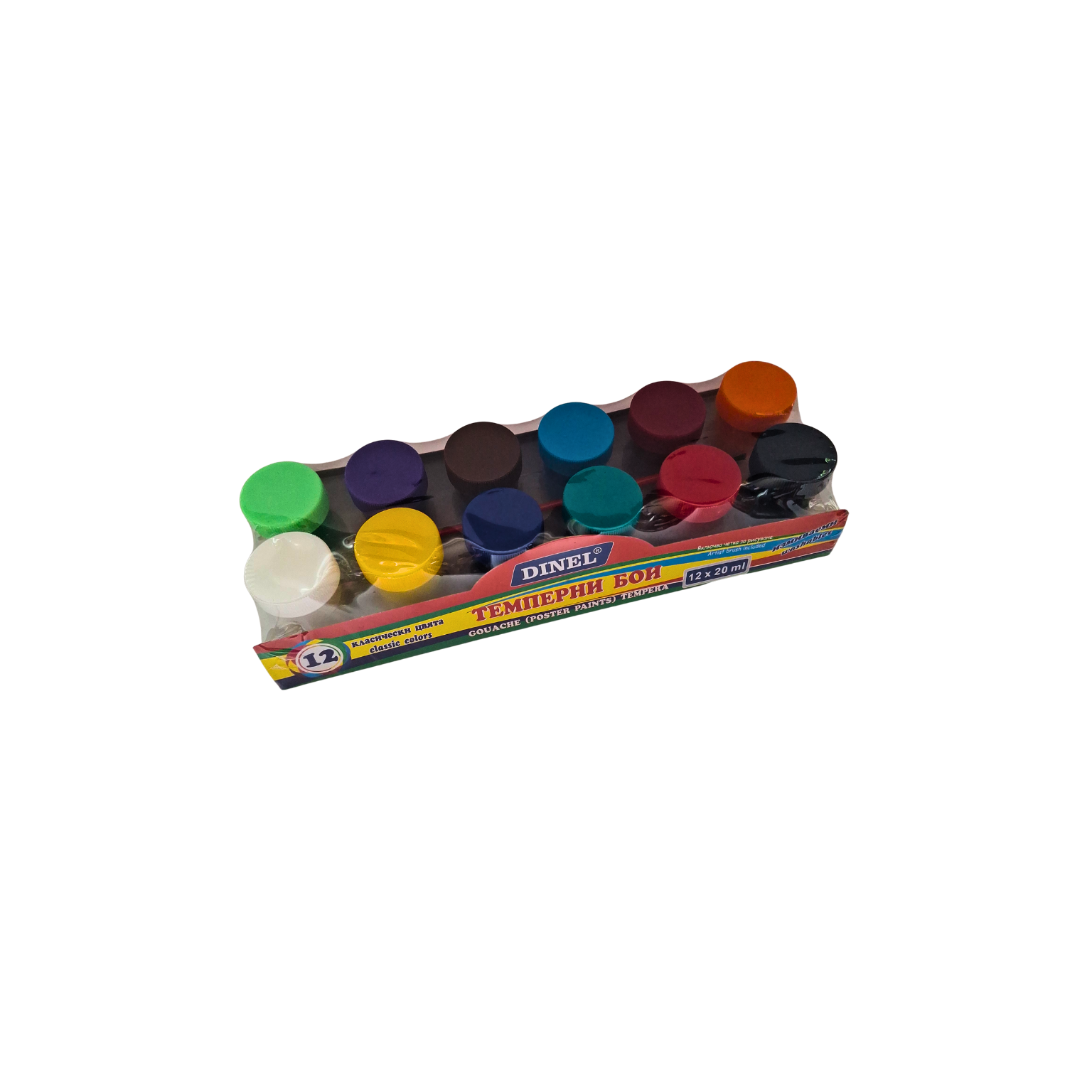 - Комплект темперни бои DINEL с 12 ярки и наситени цвята
