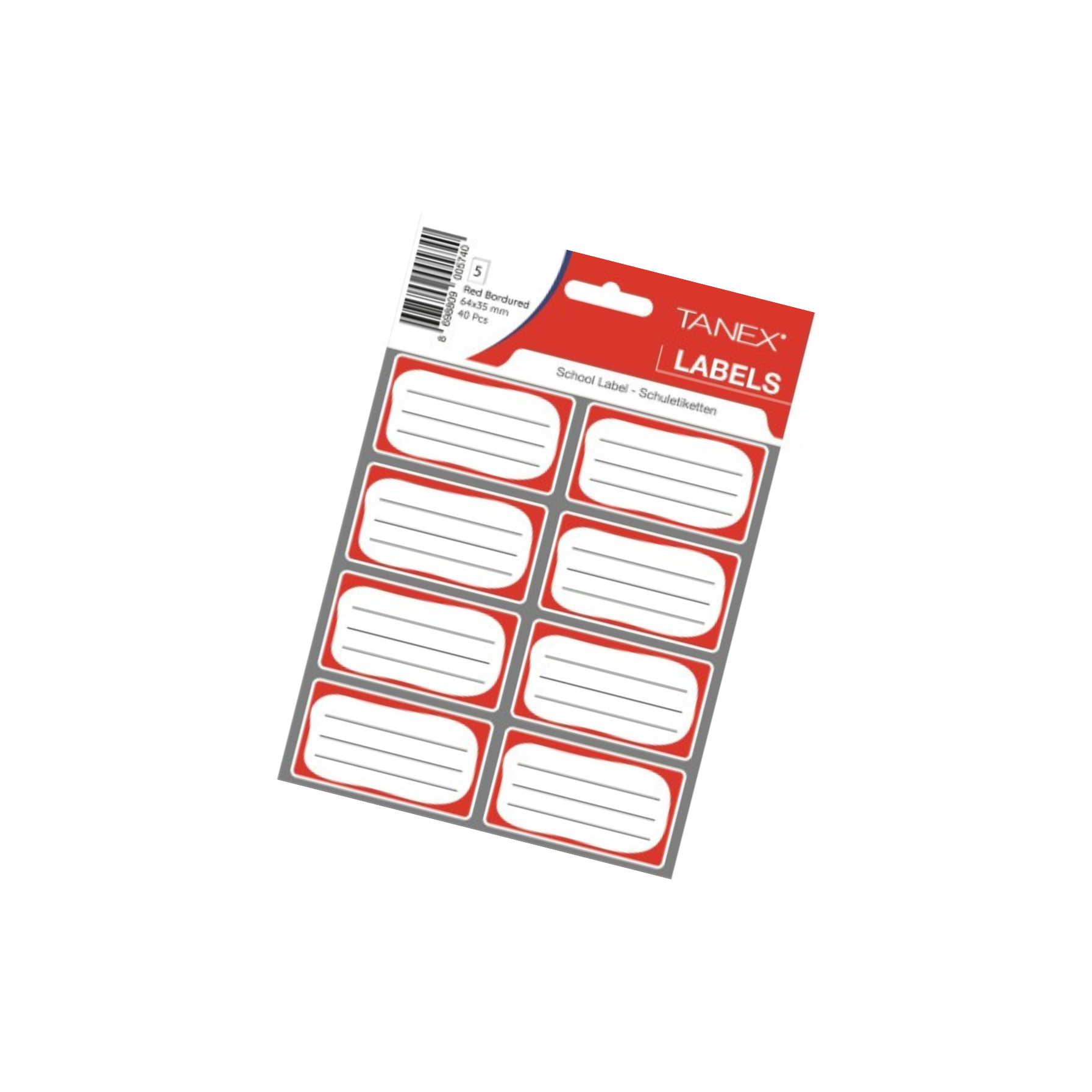 Училищни етикети TANEX – 3 листа, червен кант